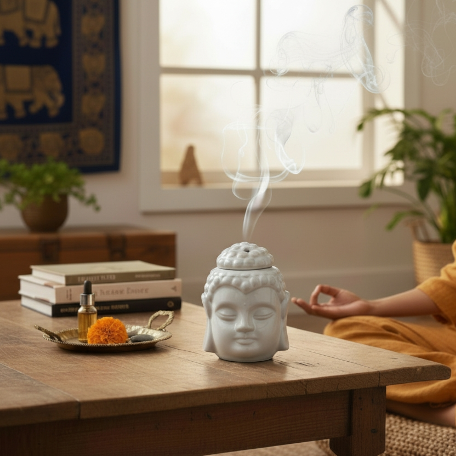 Kominek zapachowy „Budda” doskonale wpisuje się w aranżacje boho, zen, orientalne i naturalne. To nie tylko funkcjonalne akcesorium do zapachów, ale również element tworzący atmosferę ciszy, skupienia i wewnętrznej harmonii.